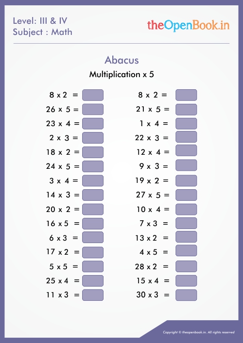 Tags : Abacus Worksheets, CBSE, NCERT, ICSE, free printable worksheets, Multiplication x 5 01