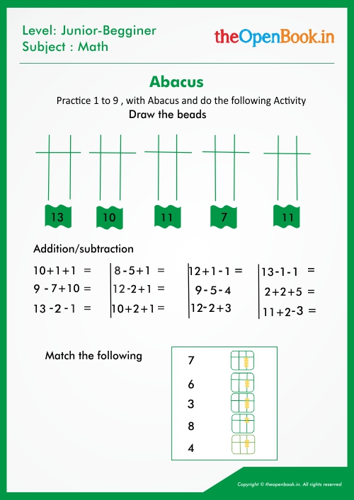 Tags : free printable worksheets, Practice 1 to 9 with Abacus and do the following Activity