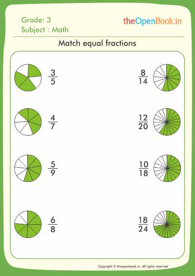 Grade 3 Math worksheet. Match equal fractions.